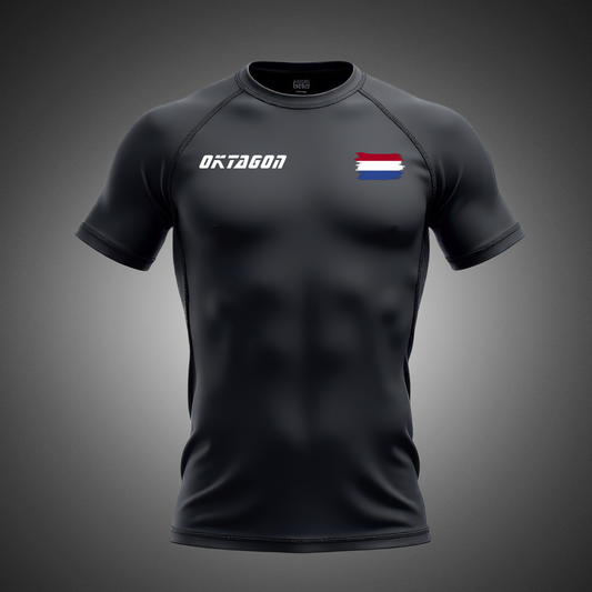 The OKTAGON rashguard is built to withstand the wear and tear of the most intense sports. With reinforced seams and ultra-durable fabric, it's the perfect ally for grappling, MMA, and extreme training. Confidence guaranteed, no matter the intensity.